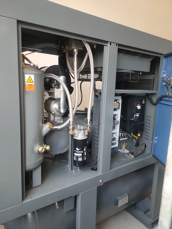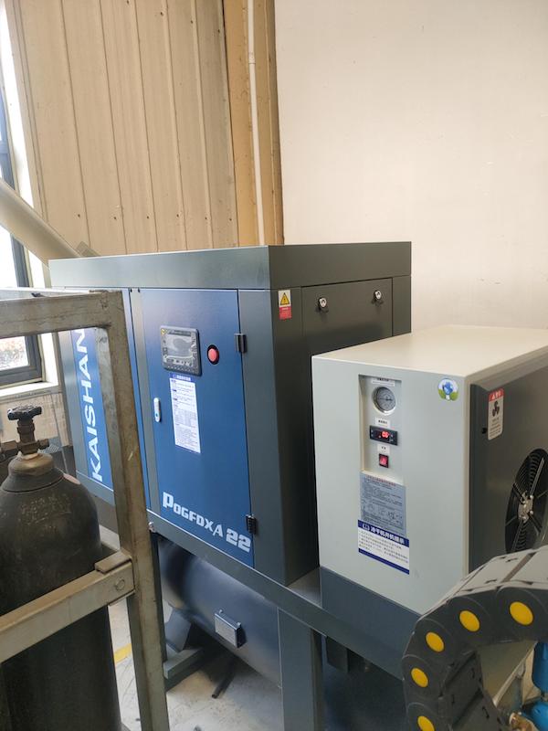 因(yin)為客(ke)戶現(xian)場車(che)間用(yong)氣是(shi)8公斤(jin),有單(dan)獨一(yi)台變(bian)頻開(kai)山空(kong)壓機(ji)供氣(qi),考慮(lü)到萬(wan)一這(zhe)🙉台👾老(lao)設備(bei)出故(gu)障耽(dan)誤整(zheng)個生(sheng)産,所(suo)以客(ke)戶在(zai)選型(xing)上特(te)别選(xuan)了大(da)一号(hao)的,與(yu)車間(jian)管道(dao)連接(jie)處配(pei)置減(jian)壓閥(fa),這樣(yang)😈這台(tai)激🧑🏽🎄光(guang)切割(ge)💕螺杆(gan)開山(shan)空壓(ya)機給(gei)激光(guang)供氣(qi)同時(shi),也可(ke)以兼(jian)顧車(che)間的(de)普通(tong)用氣(qi),一舉(ju)兩得(de),客戶(hu)表示(shi)滿意(yi)。且表(biao)😵💫示會(hui)把開(kai)山空(kong)壓機(ji)助力(li)節能(neng)減排(pai)的~情(qing)況在(zai)集團(tuan)下面(mian)其他(ta)子公(gong)司做(zuo)一個(ge)推廣(guang)。